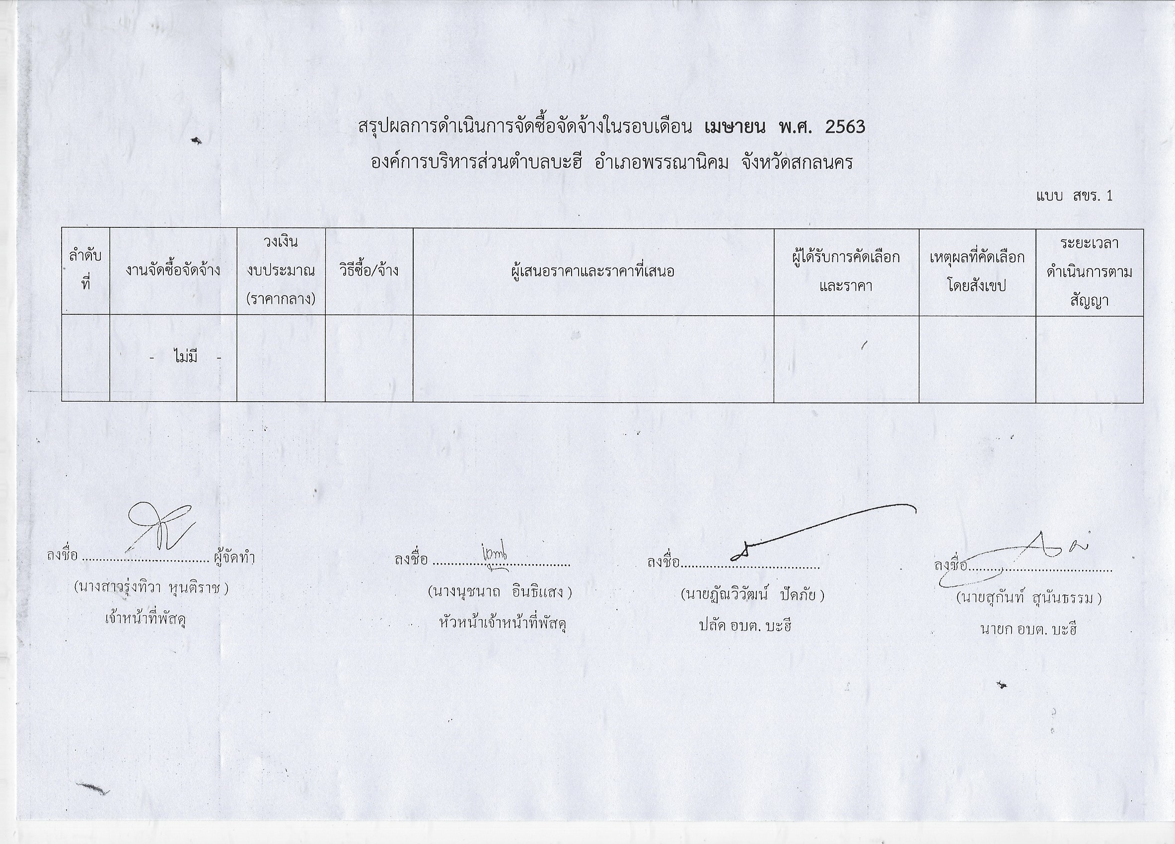 สรุปผลการจัดซื้อจัดจ้า่ง ประจำเดือนเมษายน 2563